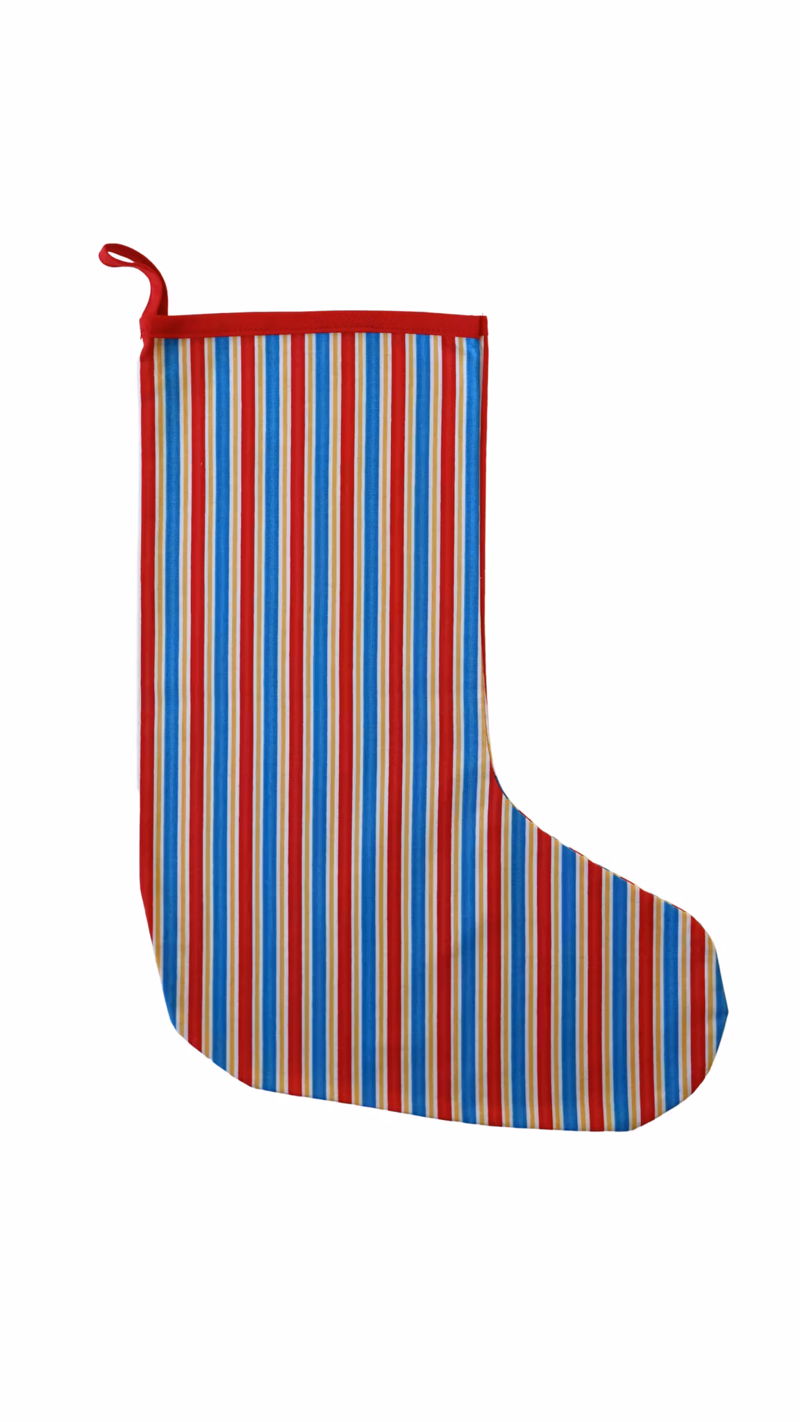 Julstrumpa 100 kr Julstrumpa sydd av återbrukade retrotyger! Produkten är tyvärr slut i lager. :( Dela Information Julstrumpa sydd av ett återbrukat randigt tyg i rött, vitt, gult och blått.